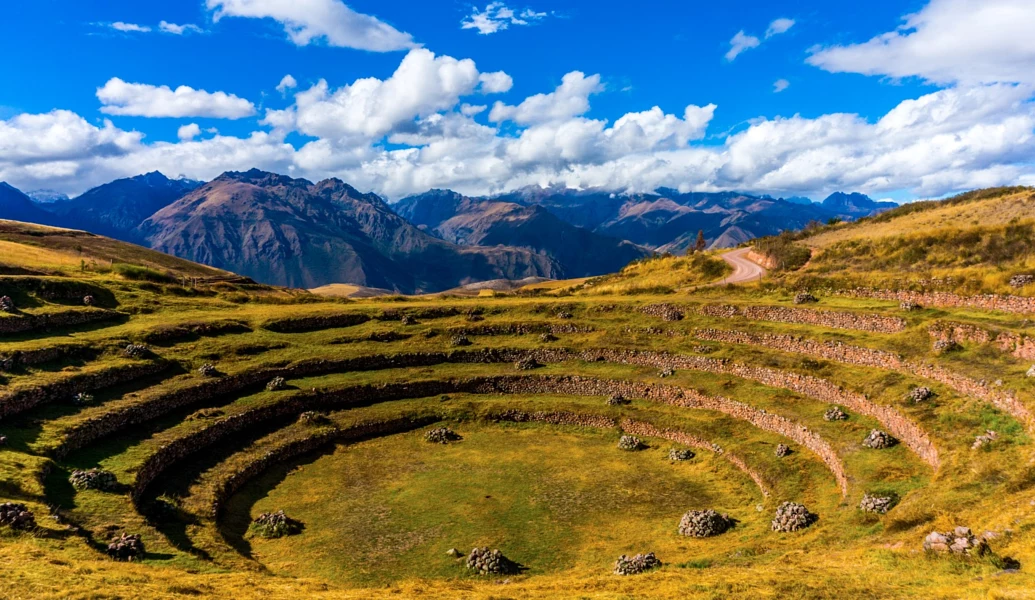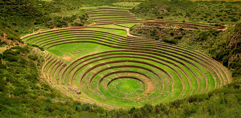 Se halla a unos 7 Km. al suroeste de Maras; es grupo arqueológico único en su género en la región. Se trata de depresiones u hoyos naturales gigantescos en la superficie del terreno que fueron utilizados para construir en sus contornos terrazas o andenes agrícolas con sus respectivos canales de irrigación, es pues un prototipo de invernadero o estación experimental biológica bastante avanzada para su tiempo que ayudó a que el hombre americano de la antigüedad heredase a la humanidad un 60% de los productos vegetales que consume, que el hombre andino consuma un millar y medio de variedades diversas de papas, un centenar y medio de maíz, y muchísimos otros productos.