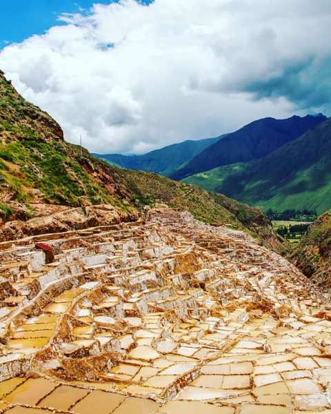 ubicado al noroeste del pueblo de Maras están constituidas por unos 3000 pozos pequeños con un área promedio de unos 5 m², durante la época de sequía se llenan o “riegan” cada 3 días con agua salada que emana de un manante natural ubicado en la parte superior de los pozos para que al evaporarse el agua, la sal contenida en ésta se solidifique paulatinamente, posteriormente la sal es golpeada y así granulada; la sal será después embolsada en costales plásticos y enviada a los mercados de la región; hoy esa sal está siendo yodada razón por la cual, su consumo no es dañino.