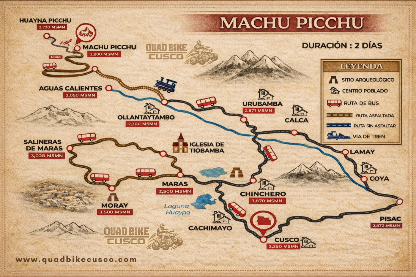 Vive una experiencia inolvidable por el Valle Sagrado de los Incas y la majestuosa Machu Picchu en un tour de 2 días y 1 noche. El primer día recorrerás los principales atractivos del Valle Sagrado, visitando Pisac, Urubamba y la fortaleza de Ollantaytambo, combinando historia, cultura y paisajes andinos. Por la tarde, viajarás en tren hacia Aguas Calientes, donde pasarás la noche.